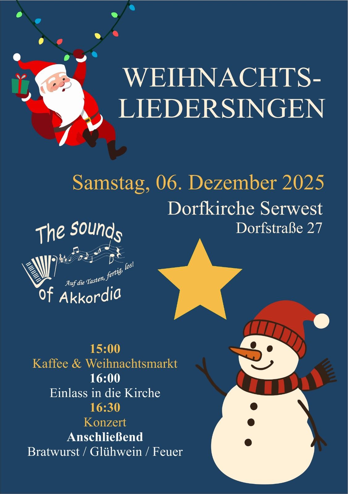 15:00 Uhr Kaffee & Weihnachtsmarkt, 16:00 Einlass in die Kirche, 16:30 Uhr Konzert
